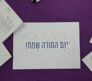 יום המורה תש"פ7 בינואר 2020תודה לועדת אירועים על ארגון המושלם!!!תלמידי כיתות א'-ב' מברכים את המורים בכרטיסי ברכה במסגרת שיעור מחשבים: גלריית תמונות